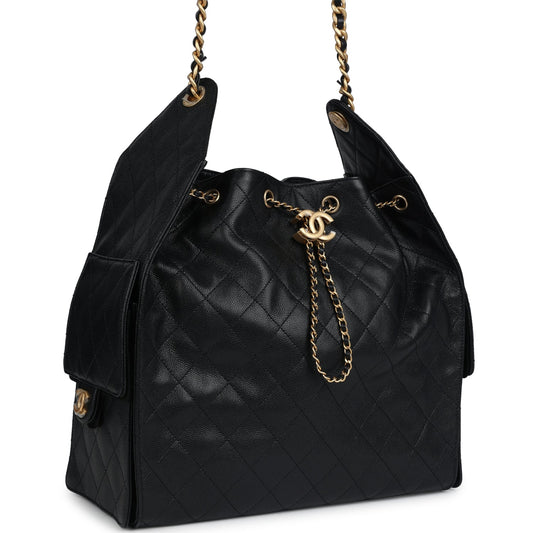 Chanel Medium 25 Hobo Bag Black Caviar Antique Gold Hardware