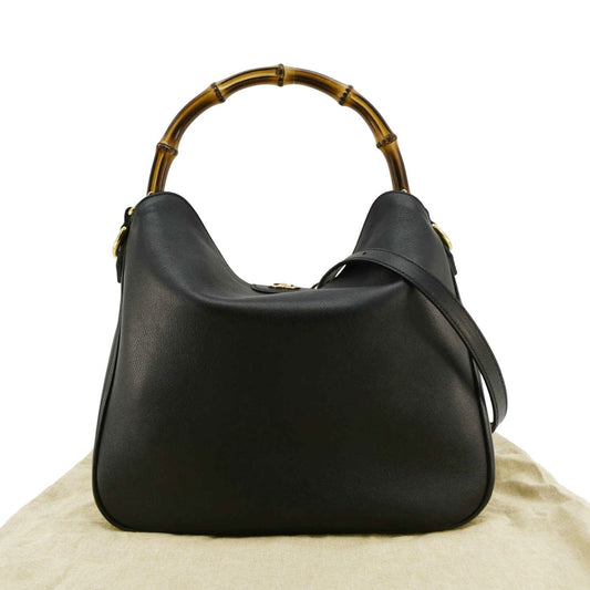 GUCCI Diana Medium Leather Top Handle Shoulder Bag Black 746124