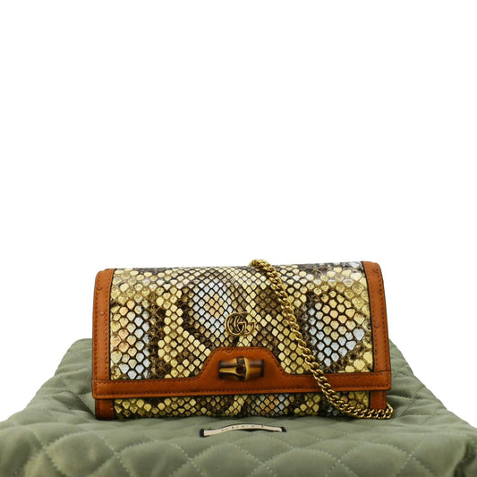 GUCCI Diana Python Chain Wallet Crossbody Bag Cloud Natural Gold 658243