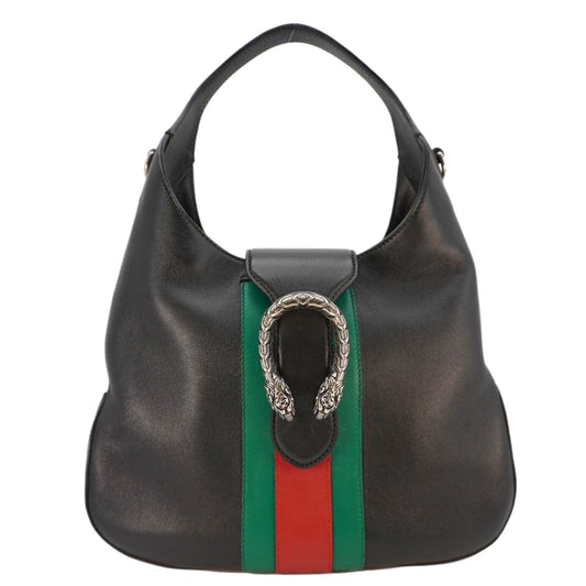 GUCCI Dionysus Medium Web Leather Hobo Shoulder Bag Black 444072