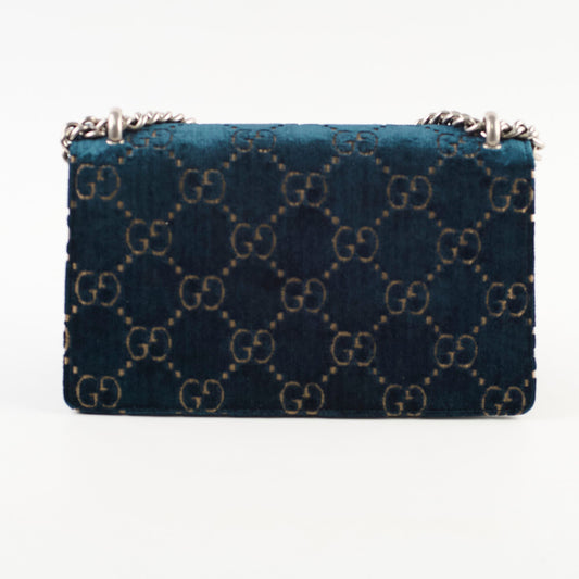 GUCCI Dionysus Small GG Velvet Shoulder Bag Olive 499623
