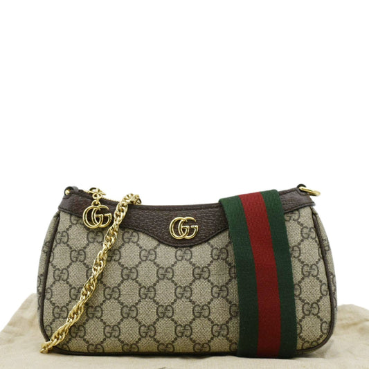GUCCI Dollar Ophidia Web Small GG Supreme Monogram Canvas New Acero Shoulder Bag Beige 735132