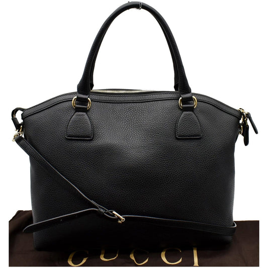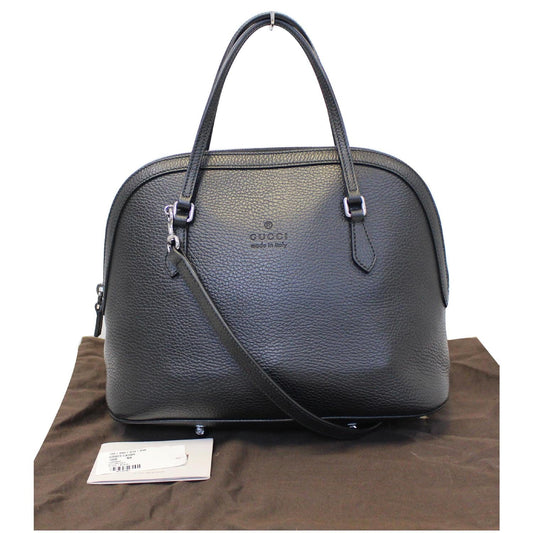 GUCCI Dome Large GG Charm Pebbled Leather Satchel Bag Black 449660