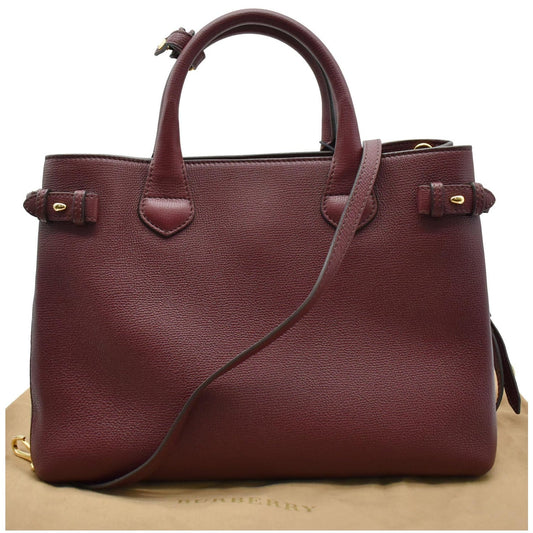 BURBERRY Banner Medium Leather Tote Shoulder Bag Red