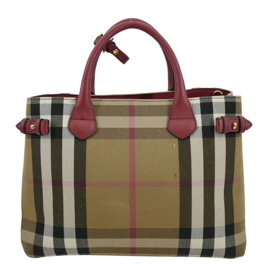 BURBERRY Banner Small House Check Leather Tote Shoulder Bag Maroon