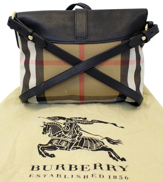 BURBERRY Black Leather House Check Horseshoe Milton Crossbody Bag