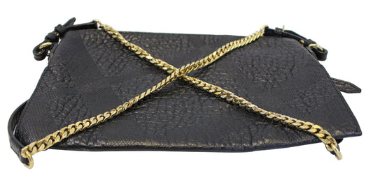 BURBERRY Black Embossed Leather Chichester Crossbody Clutch Bag