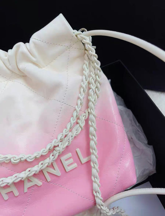 24S Chanel 22 Mini Handbag Patent calf leather with gradient and lacquered metal, White & Light Pink