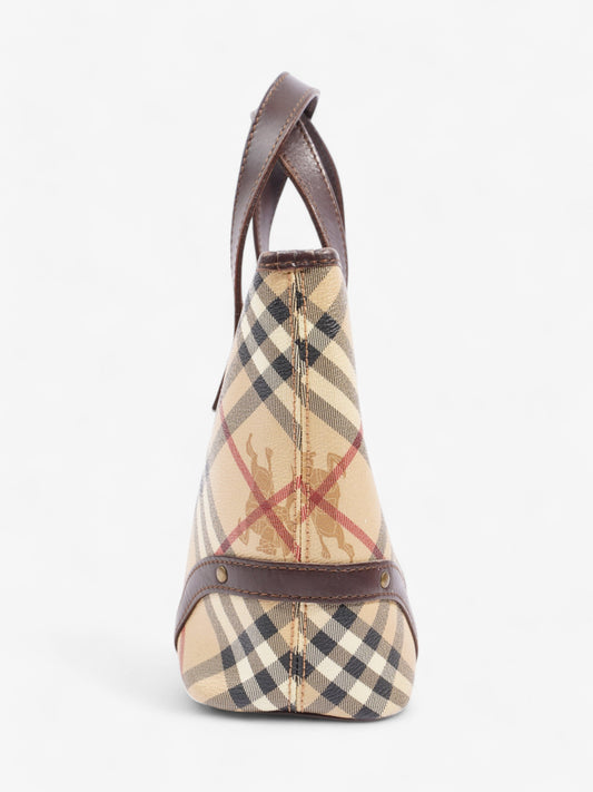 Burberry Check Backpack Dark Birch Brown / Black Coated Canvas Medium