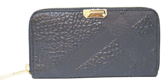 BURBERRY Embossed Check Leather Zip Around Wallet Black