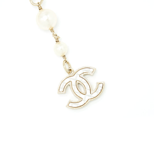Chanel Pearl Waist Chain Belt With CC Logo Drop Light Gold Tone