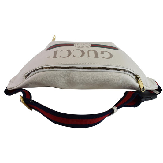 GUCCI Print Leather Medium Belt Waist Bum Bag White 530412