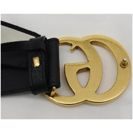 GUCCI Wide Double G Buckle Leather Belt Black Size 90/36 453265