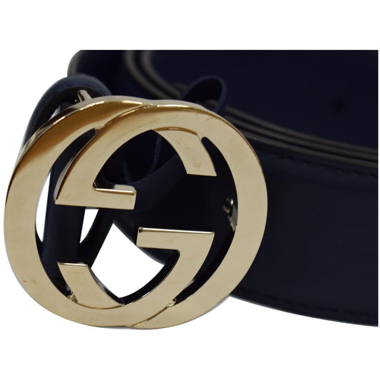 GUCCI Interlocking G Leather Belt Navy Blue Size 90/36 - 15% OFF