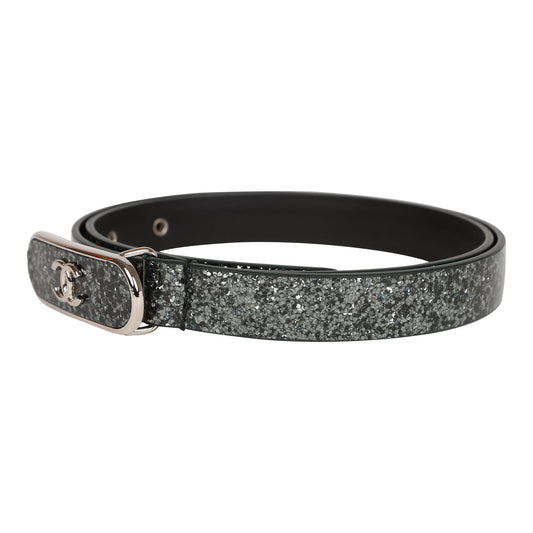 Chanel Black Metallic Patent Leather Belt 70
