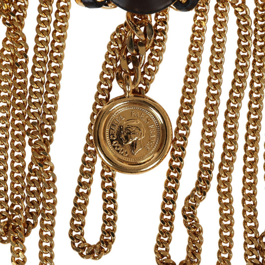Chanel Vintage 24K Gold Plated CC Medallion Chainlink Leather Belt Black Leather