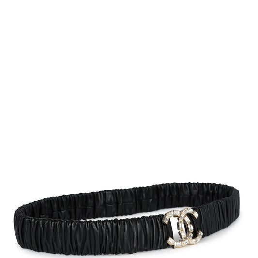 Chanel CC Ruched Leather Belt Black Calfskin Crystal Light Gold Hardware