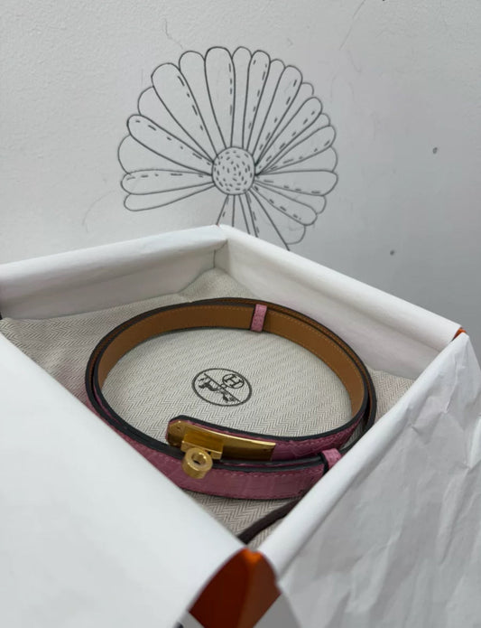 Hermès Kelly Belt Pink Crocodile leather Gold Hardware