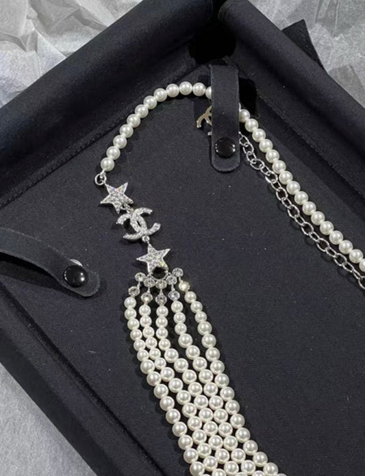 Chanel 20A multi-layered pearl star full diamond waist chain belt