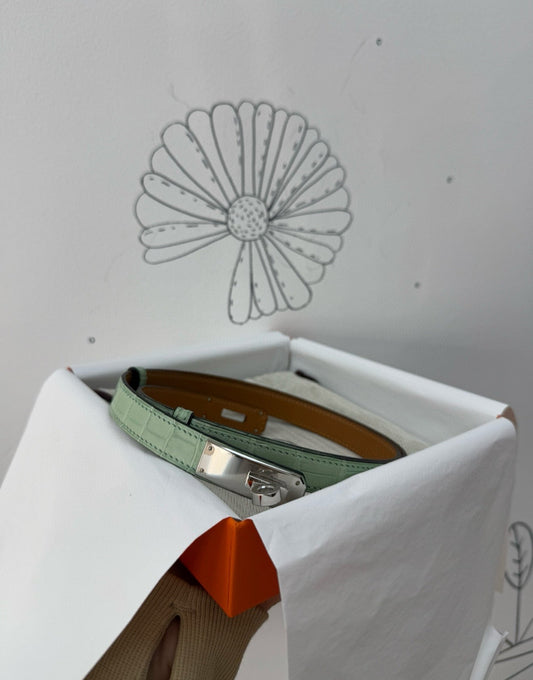Hermès Kelly Belt Green Vert d’Eau Crocodile leather Palladium Hardware
