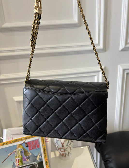 Chanel23s black gold cowhide metal braided belt shoulder strap