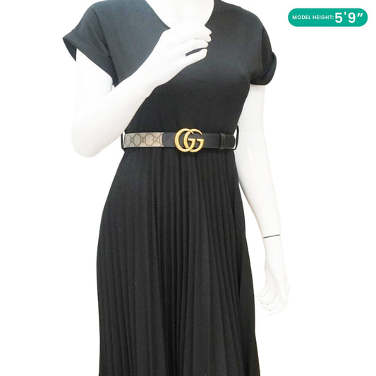 GUCCI Double G buckle Marmont Reversible Leather Belt Black 404912 Size 70.28