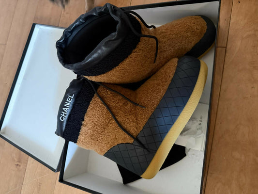 Chanel G39093Y56084 Print Fabric Lambskin Shearling Boots