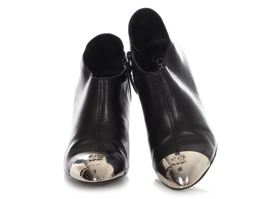 Chanel Black Metal Capped-Toe Booties