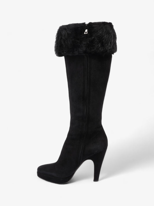 Prada Fur Trim Calf Boots 100mm Black Suede EU 37 UK 4