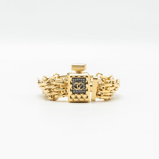Chanel CC Logo Chain Vu Bracelet Crystal Light Gold Tone