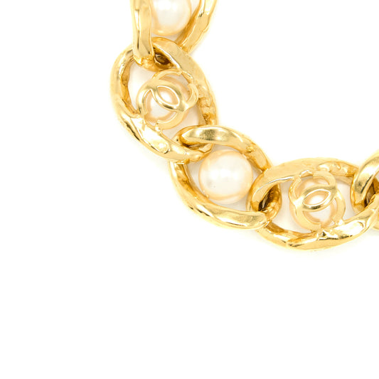 Chanel CC Logo With Pearl Bracelet Gold Tone