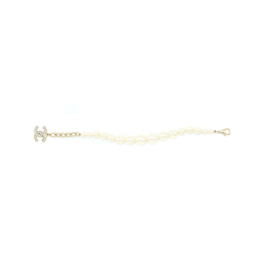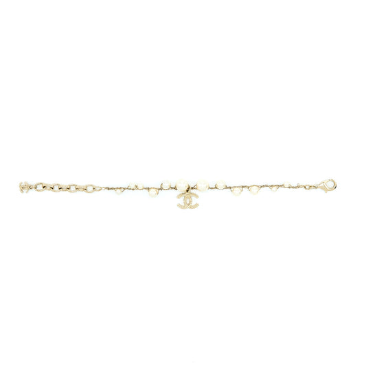 Chanel CC Logo Bracelet Pearl/Crystal Light Gold Tone
