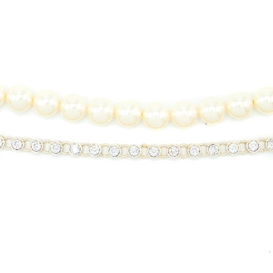 Chanel Double Chain CC Logo Bracelet Crystal/Pearl Light Gold Tone