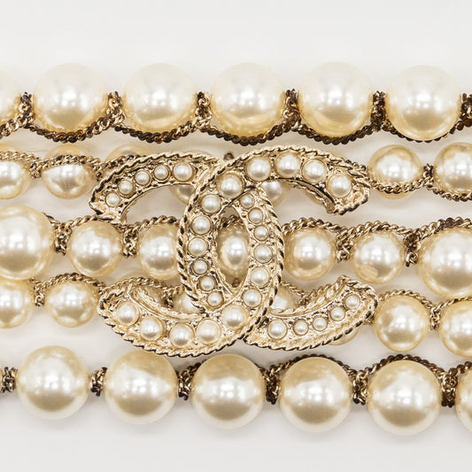 Chanel Pearl Bracelet With CC Logo Light Gold Tone
