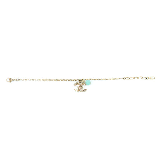 Chanel cc logo dropped bracelet with crystal / pearl light gold tone