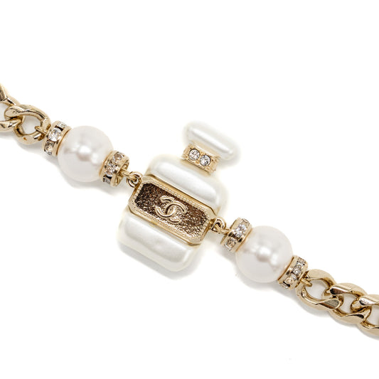 Chanel No.5 Perfume Bottle Bracelet Crystal/Pearl Light Gold Tone