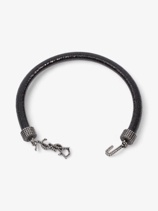 Saint Laurent Logo Hook Bracelet Black / Silver Tone Leather Medium