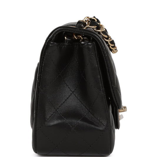 Chanel Mini Square Flap Bag Black Lambskin Light Gold Hardware
