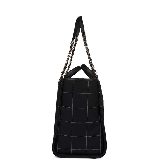 Chanel Large Deauville Shopping Bag Black and White Grid Light Gold Hardware