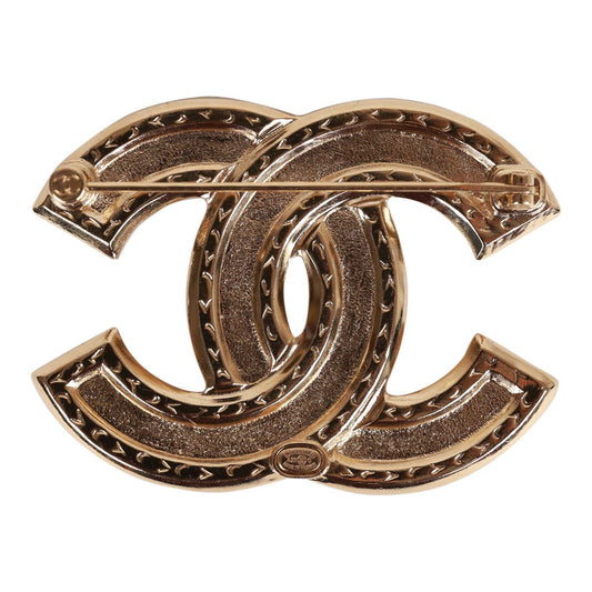 Chanel CC-Logo Gold Tone and Crystal Quilted Large Brooch