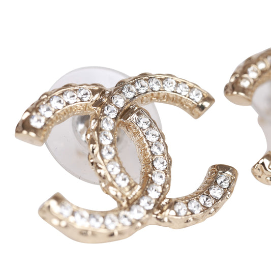 Chanel Gold Crystal Twist Boucle CC Earrings