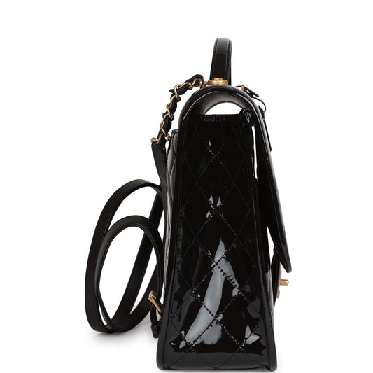 Chanel Large Flap Backpack Black Patent Antique Gold Hardware