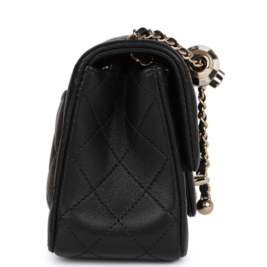 Chanel Pearl Crush Mini Square Flap Bag Black Lambskin Light Gold Hardware