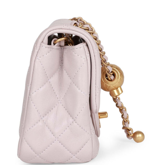 Chanel Pearl Crush Mini Square Flap Bag Purple Lambskin Antique Gold Hardware
