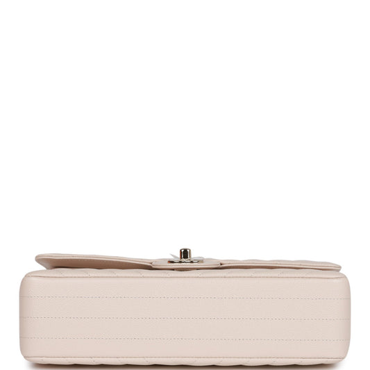 Chanel Medium Classic Double Flap Bag Beige Caviar Silver Hardware