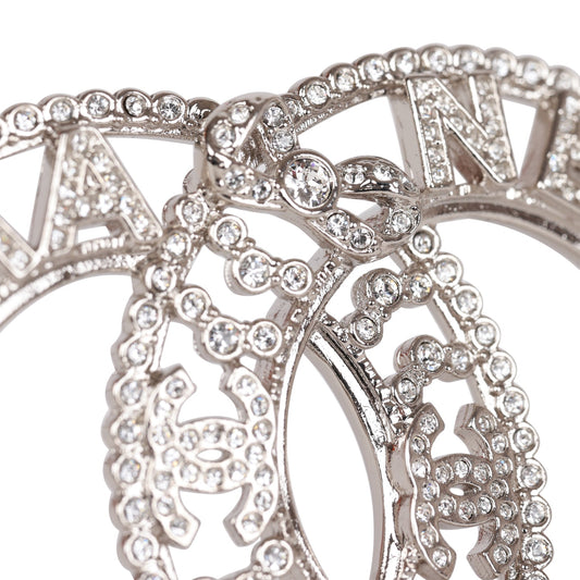Chanel Crystal Bow CC Silver Brooch