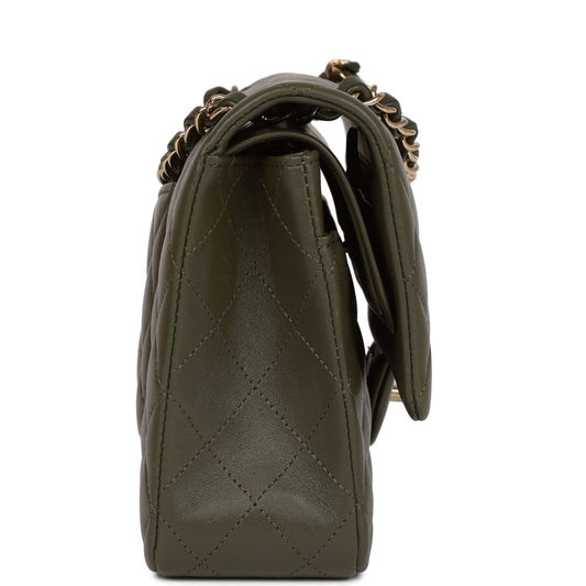 Chanel Medium Classic Double Flap Bag Olive Calfskin Light Gold Hardware
