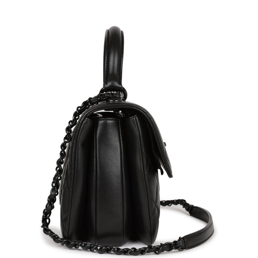 Chanel Mini Rectangular Flap Bag with Top Handle Black Lambskin Light Gold Hardware
