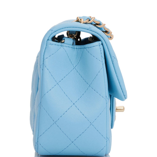 Chanel Mini Rectangular Flap Bag Blue Lambskin Light Gold Hardware