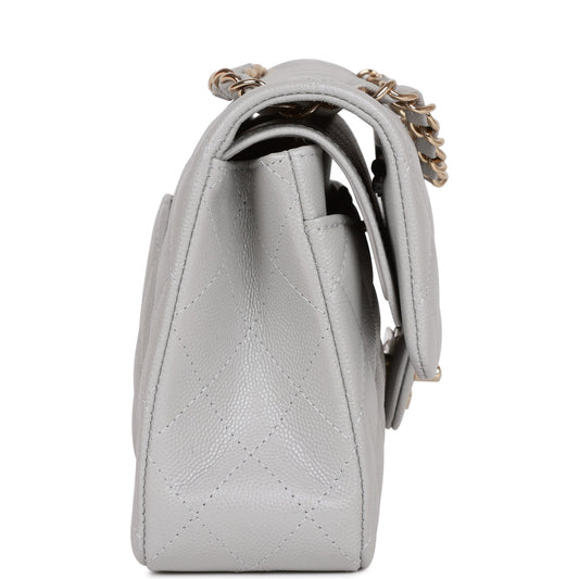 Chanel Small Classic Double Flap Grey Caviar Light Gold Hardware